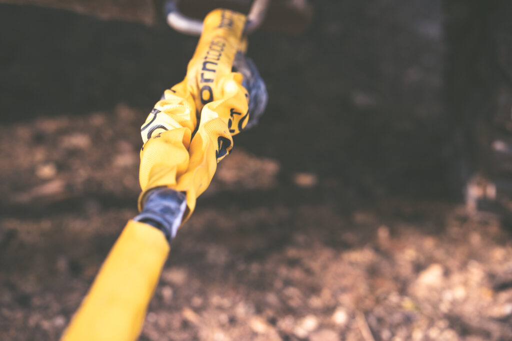 Das Seil nutzt ihr bei der sanftesten Form des Bergens: das simple Herausziehen. Aber bitte denkt daran, nicht rucken oder mit Schwung in das Seil fahren. Diese Variante der Bergung ist eher ein Abschleppen, als ein Herausrucken. Wenn das nicht klappt, könnt ihr auf andere Materialien und Techniken zurückgreifen. Ein paar Tipps dazu gibt es am Ende des Artikels.