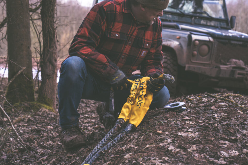 - Jetzt erst, als viertes, kommt die Winde zum Einsatz. Am besten mit Umlenkung, wenn die Länge des Seils ausreichend ist. Denkt daran, mit dem 5 Meter Bergeseil auf dem Recovery Kit+ könnt ihr das Windenseil verlängern. In den meisten Fällen sollte es jetzt klappen. Wenn es auch mit der Winde nicht klappt, habt ihr es wirklich mit einer schwierigeren Situation zu tun.