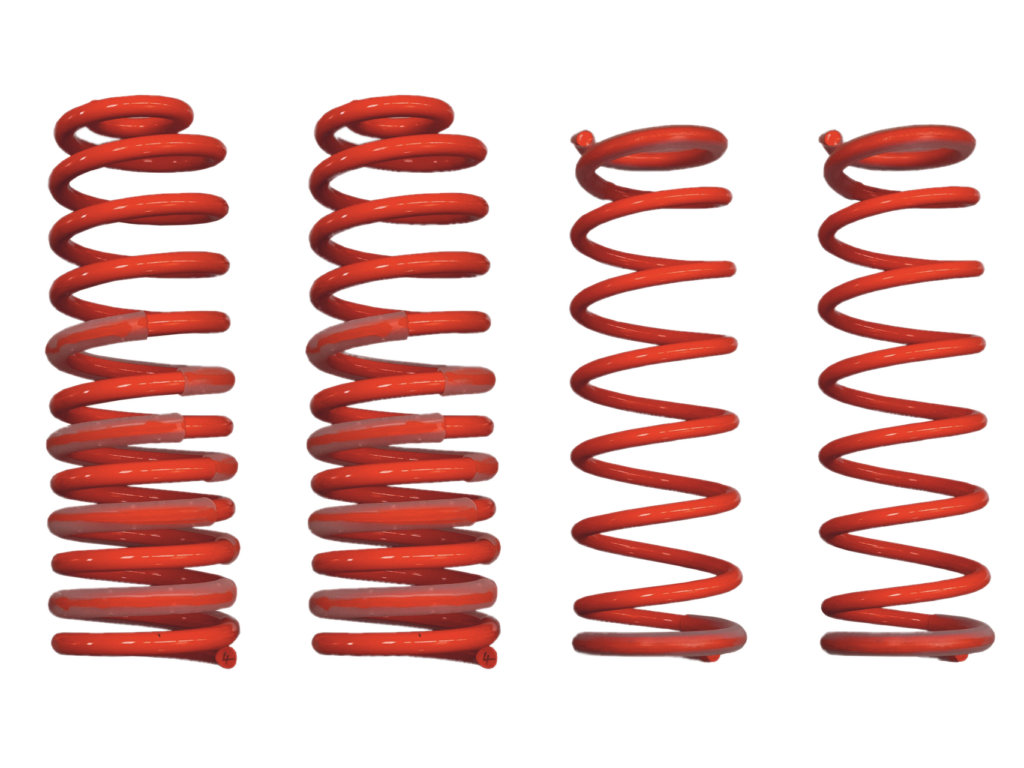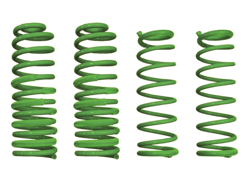 Die Tieferlegung beträgt mit diesem Federnsatz ca. 30 Millimeter. Sie eignet sich für Fahrzeuge ohne Seilwinde und die serienmäßigen Stoßdämpfer können weiterhin verwendet werden. Die Lieferung erfolgt mit TÜV-Gutachten.