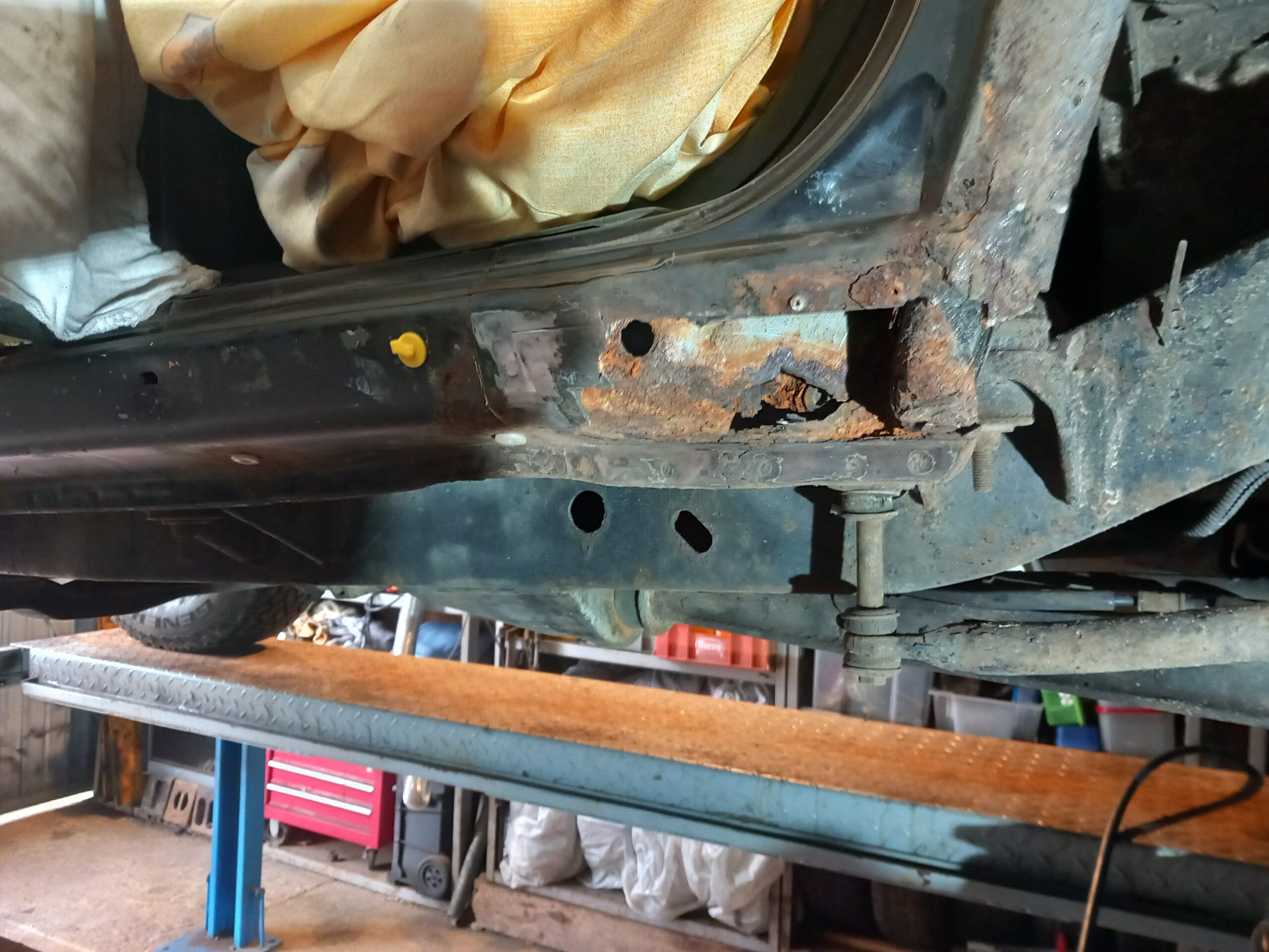 Den folgenden Winter nutze er um den massiven Rostbefall zu bekämpfen. Die Radläufe hinten links und rechts sind ganz typische Stellen für Rost beim Galloper. Dazu kamen noch ein paar kleinere Löcher in den Schwellern. Die Karosserie hinten links musste Mario sogar mit Teilen von einem anderen Galloper wieder herstellen, da war keine Substanz mehr.