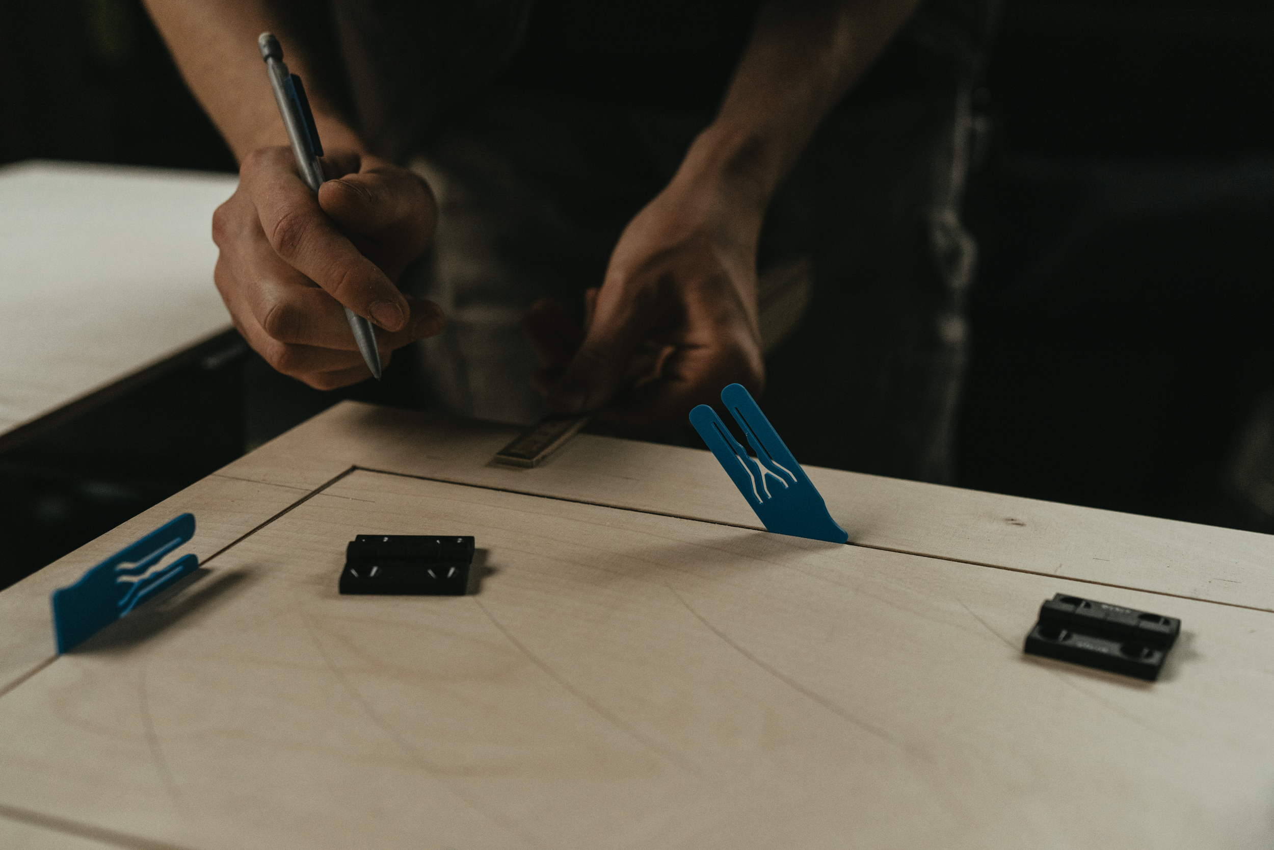 Lediglich die schwarzen Hebelverschlüsse von 4×4-Innenausbau sind vom letzten Ausbau geblieben. Sie sind super praktisch und eignen sich perfekt auch für holprige Offroad-Strecken, da bleibt alles zu. Die Oberflächen hat er zweimal mit Öl behandelt. Alle großen Ausschnitte für die BOXIO-Kisten hat Nathan mit Hilfe einer Schablone und der Oberfräse gelöst.