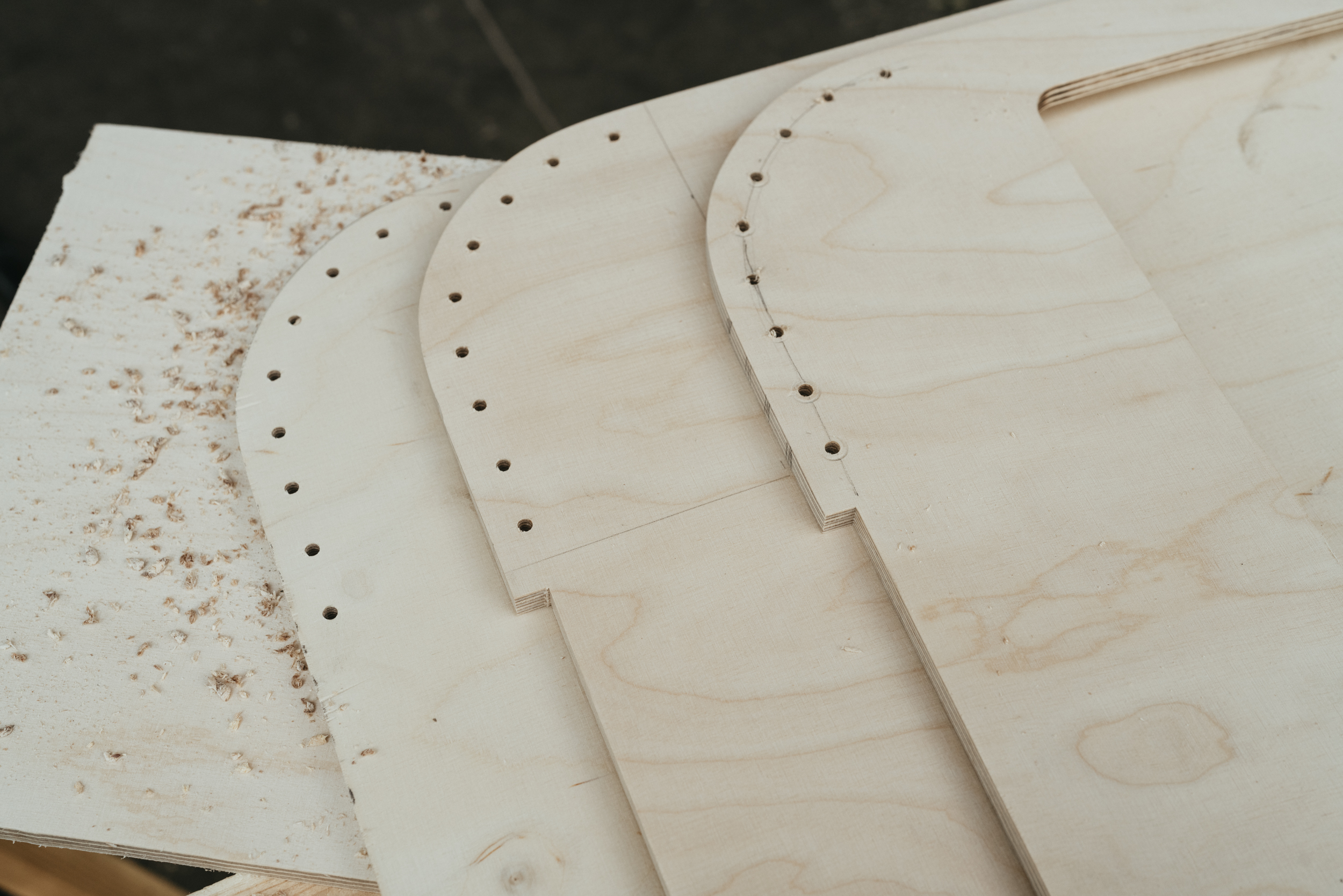 Im Gegensatz zum ersten Versuch ist dieser Ausbau präziser, stabiler und deutlich durchdachter. Er hat den Ausbau im Vorfeld komplett in einem 3D-Programm geplant und die Grund-Konstruktion im Betrieb zugeschnitten, die Montage erfolgte in der Halle von Matsch&Piste. Für die Verbindungen nutzte er eine Flachdübelfräse, die Platten bestehen aus 9 mm Birke-Multiplex. So ist der Ausbau stabil, leicht und hell in der Optik.