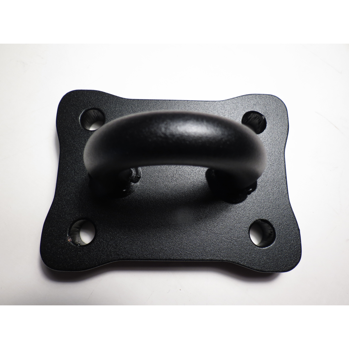 Wieder eine einfache aber gute Lösung. Eine 15 Millimeter dicke St52 Stahlplatte mit massivem 16 Millimeter Haken, Innenweite 40 Millimeter, und dem Standard-Lochbild für Anhängerkupplungen von 83 x 56 Millimetern für vier M10-Schrauben. Die Bruchlast der Öse liegt bei 18 Tonnen.