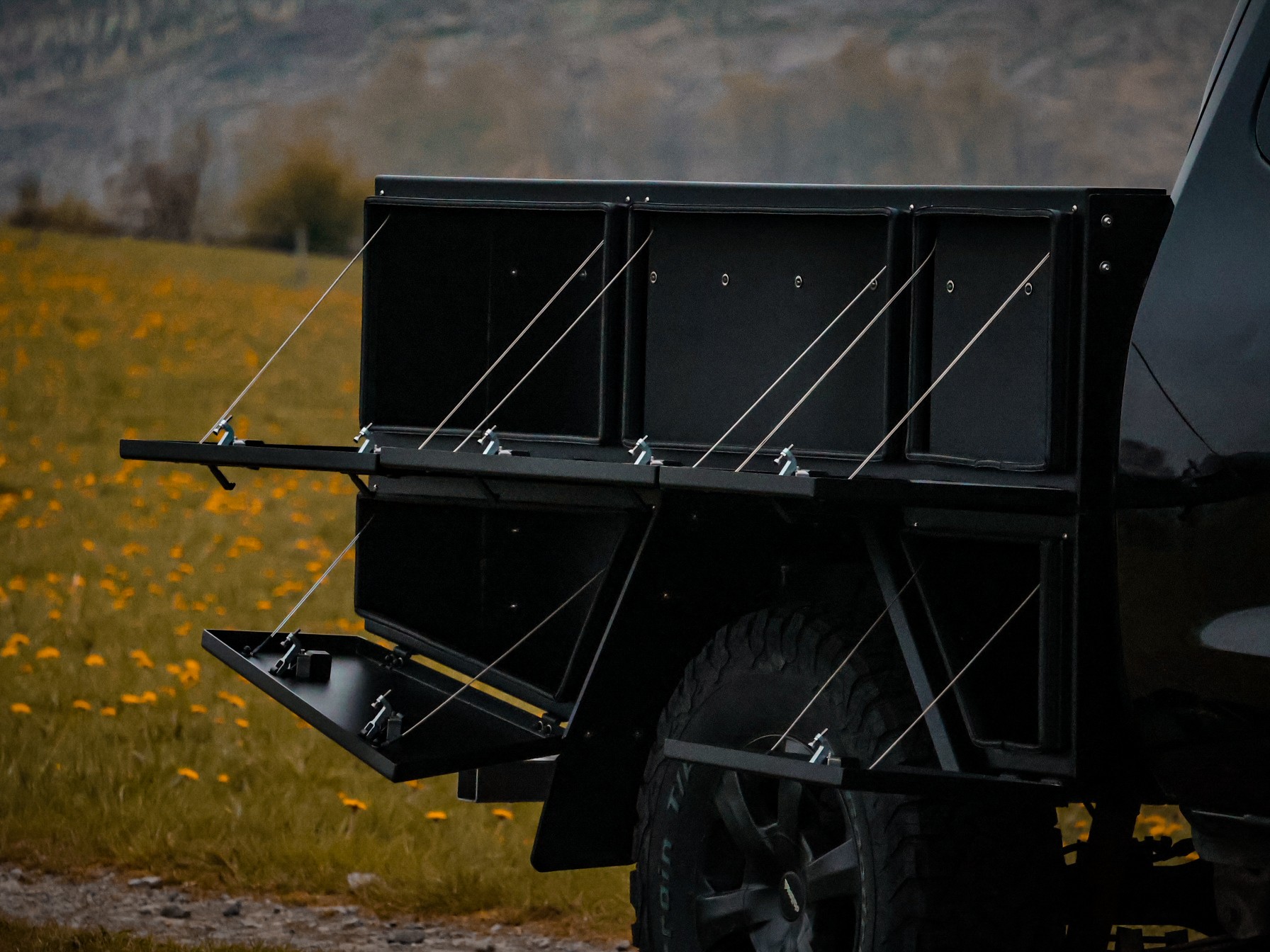 Flatbeds für Pick-ups mit oder ohne Stauboxen sind keine Neuheit, doch diese Ladefläche mit Stauboxen ist wirklich interessant für alle Pick-up und Wohnkabinenfans. Sie bietet einen großen Raumgewinn und ermöglicht vielfältige Nutzungsmöglichkeiten auf Reisen, für Hobbys und Freizeit oder den Beruf.