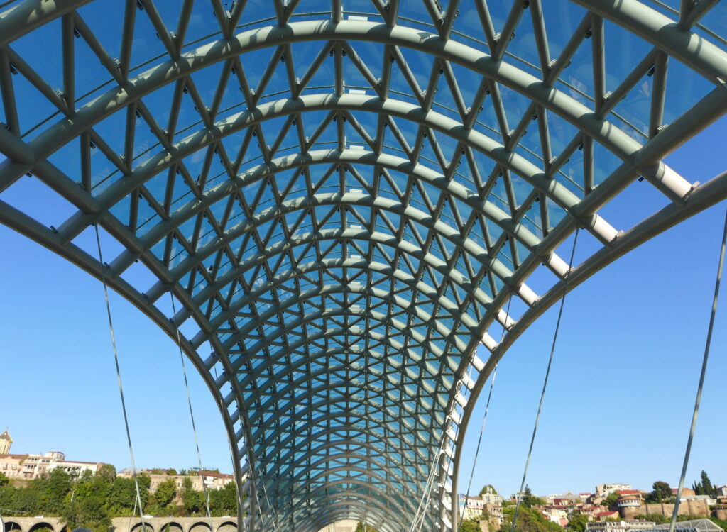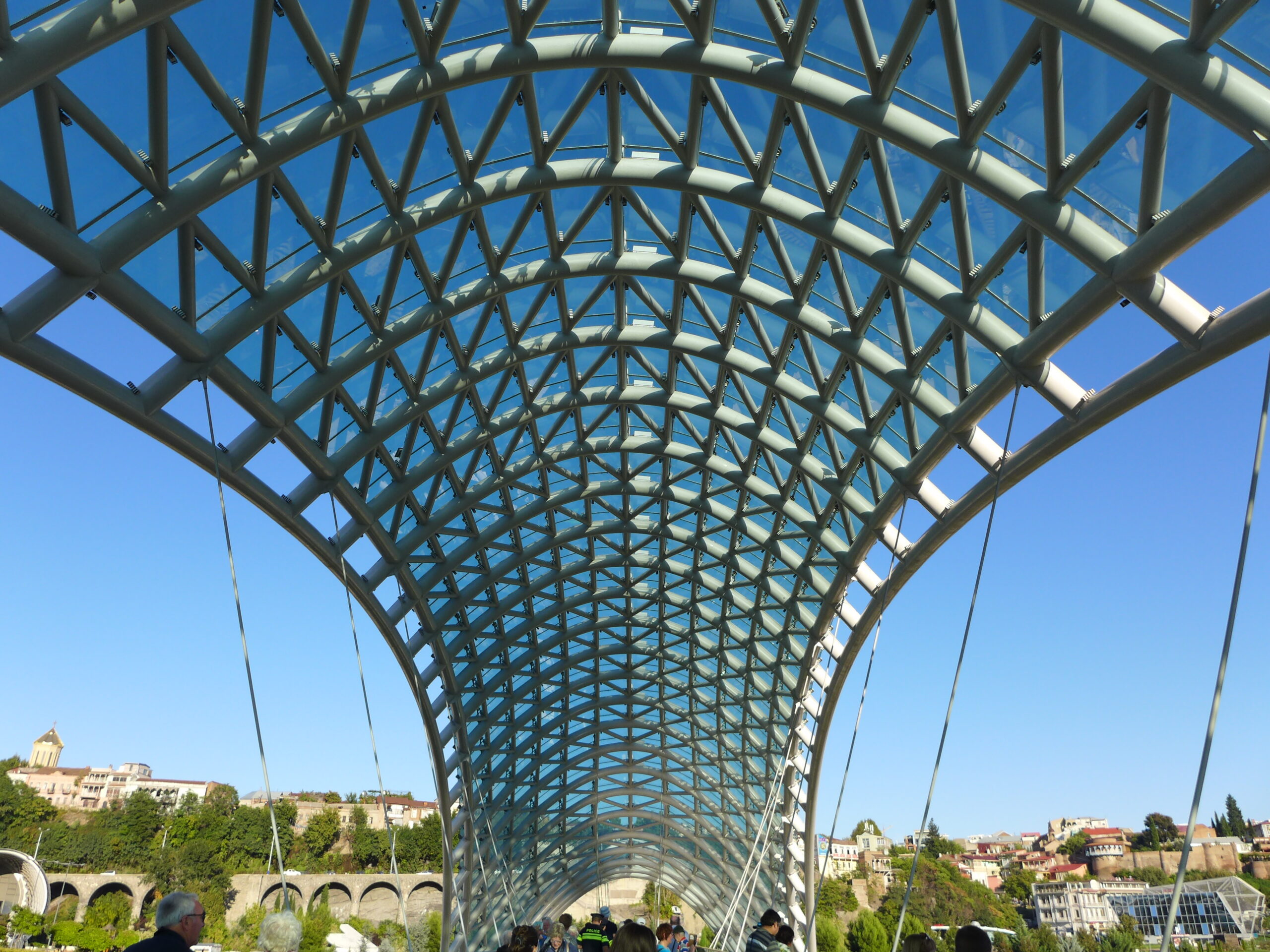 Die Friedensbrücke ist eine bogenförmige Fußgängerbrücke über den Mtkwari. Die 150 Meter lange, überdachte Brücke ist ein architektonisches Meisterwerk und verbindet die Altstadt mit einem Park auf der anderen Seite des Flusses. Dort befindet sich die Talstation der Seilbahn von der ihr nicht nur zur Statue Mutter Georgien sowie zur Festung Nariqala gelangt, sondern sie bietet euch darüber hinaus einen schönen Ausblick über Tiflis.