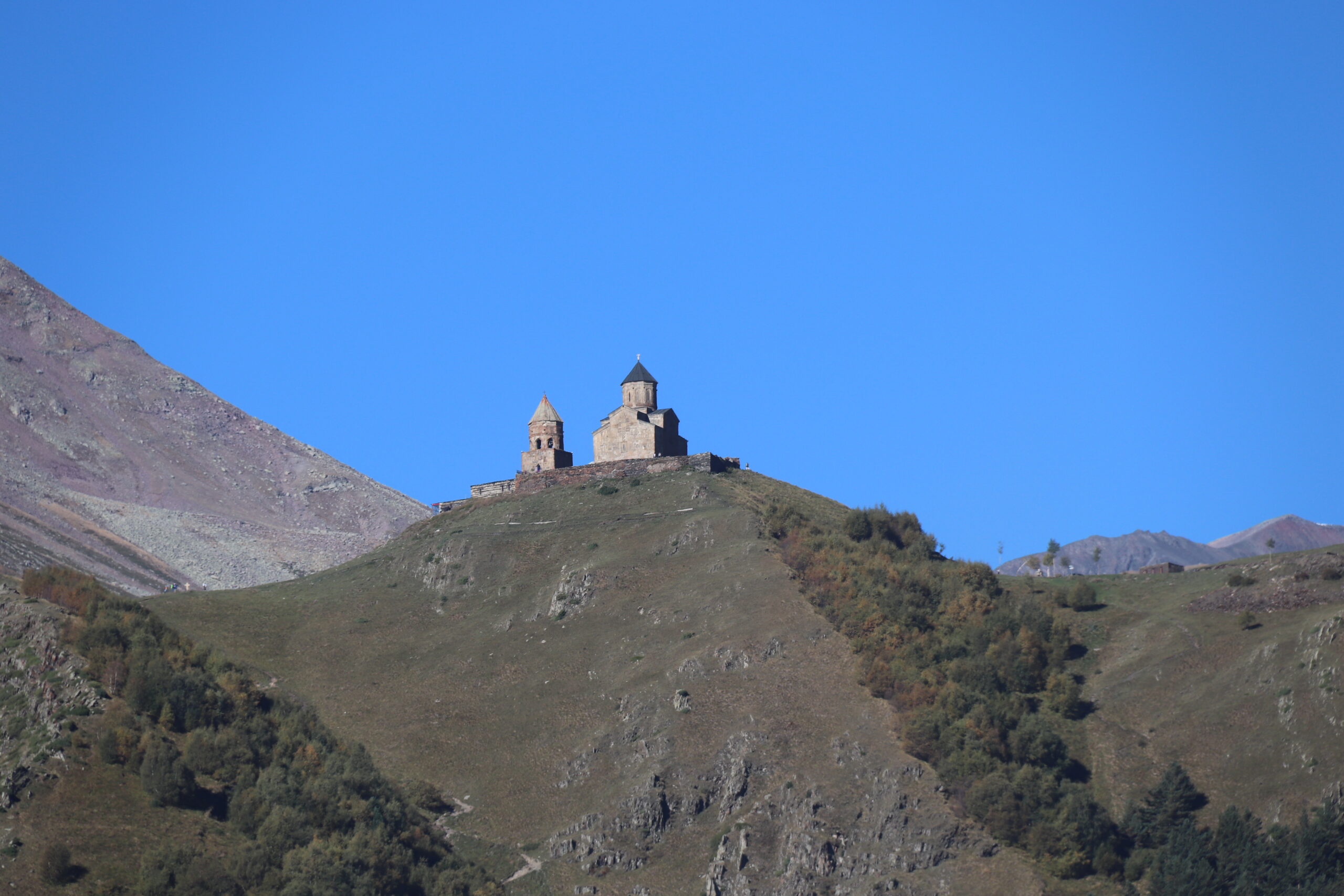 Sofern ihr über Russland nach Georgien einreist, kommt ihr von Norden direkt über die Alte Heerstraße in das Kaukasus-Land. Die Strecke führt vorbei an Kazbegi mit seinem bekannten Kloster und über den Dhscwaripass. Diese Strecke ist zwar asphaltiert, doch auf jeden Fall einen Besuch wert.
