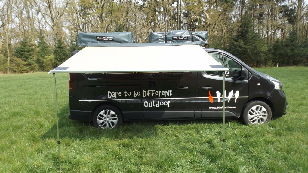 Das Markisengewebe aus robustem Canvas hält Regen zuverlässig draußen und steckt Sonne genauso weg wie Wind. Die Hülle aus schwerem PVC schützt beim Fahren vor Dreck und Ästen. Alles wirkt solide und durchdacht, ohne unnötigen Schnickschnack. Wer mehr Schutz braucht, ergänzt Seitenwände oder das passende Wohnzelt von Dare to be Different. So entsteht in kurzer Zeit ein geschlossener Raum für bis zu vier Personen, mit dem euch auch schlechtes Wetter den Urlaub nicht vermiest.